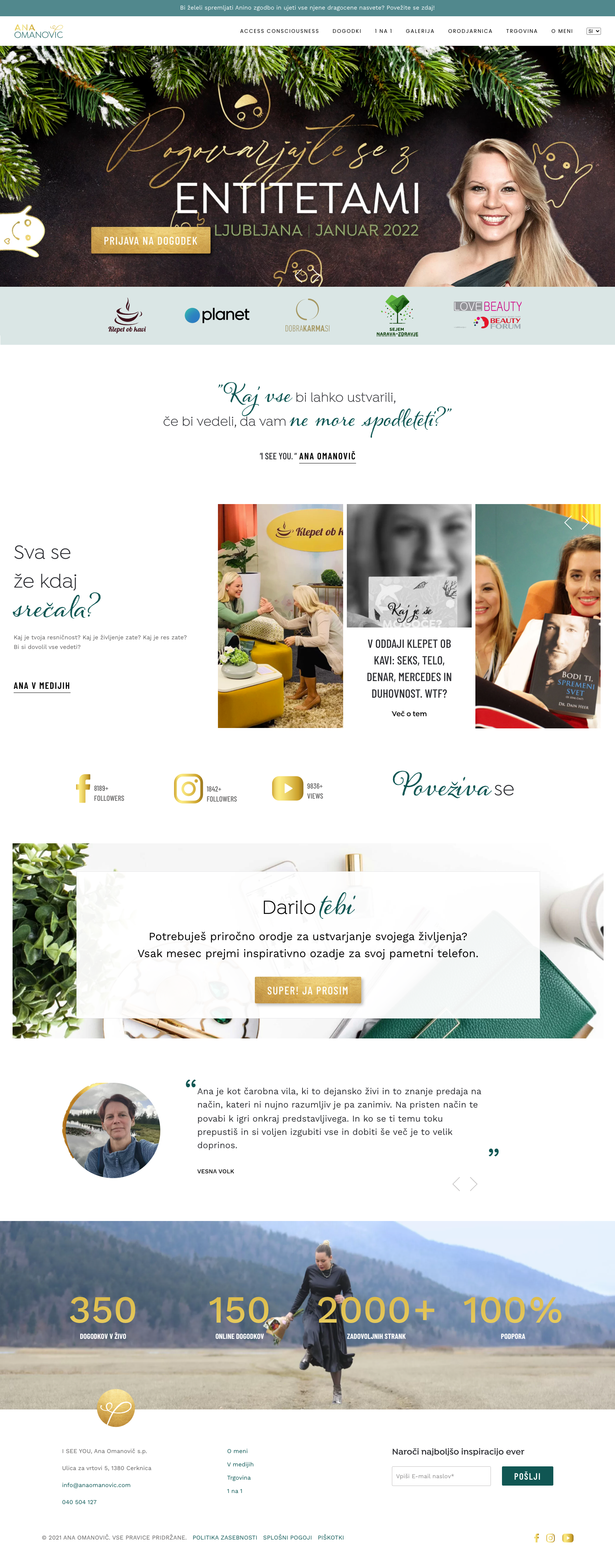 Custom wordpress spletna stran. Po meri oblikovana spletna stran za Ano Omanovič, facilitatorko procesov Access Consciousness®. Smernice: pregledno in prijazno, s ščepcem blišča.